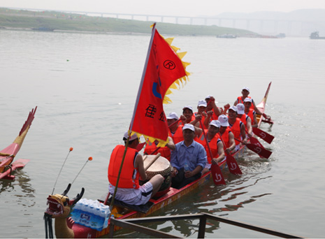 6月22日,中國·鄖縣第四屆調(diào)水源頭龍舟節(jié)在鄖陽漢江大橋南岸橋頭隆重開幕。我公司組建的龍舟隊在隊員們半個月的艱苦訓(xùn)練下,順利通過初賽并進入決賽。決賽當(dāng)天我公司龍舟隊在江上擂鼓運漿,奮力飛馳,激起白浪翻騰,聚集于江岸的萬千觀眾激起一陣又一陣的助威加油聲浪,經(jīng)過數(shù)輪激烈角逐我公司龍舟隊在18支參賽龍舟隊中脫穎而出,最終獲“道德風(fēng)尚”榮譽稱號。
